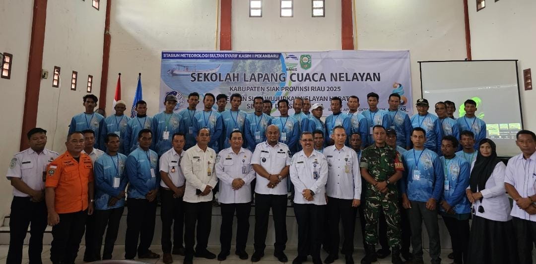 Siak, 15 Oktober 2025 – Badan Meteorologi, Klimatologi, dan Geofisika (BMKG) melalui Stasiun Meteorologi Sultan Syarif Kasim II Pekanbaru menyelenggarakan kegiatan Sekolah Lapang Cuaca Nelayan (SLCN) di Desa Teluk Batil, Kecamatan Sungai Apit, Kabupaten Siak, Provinsi Riau.