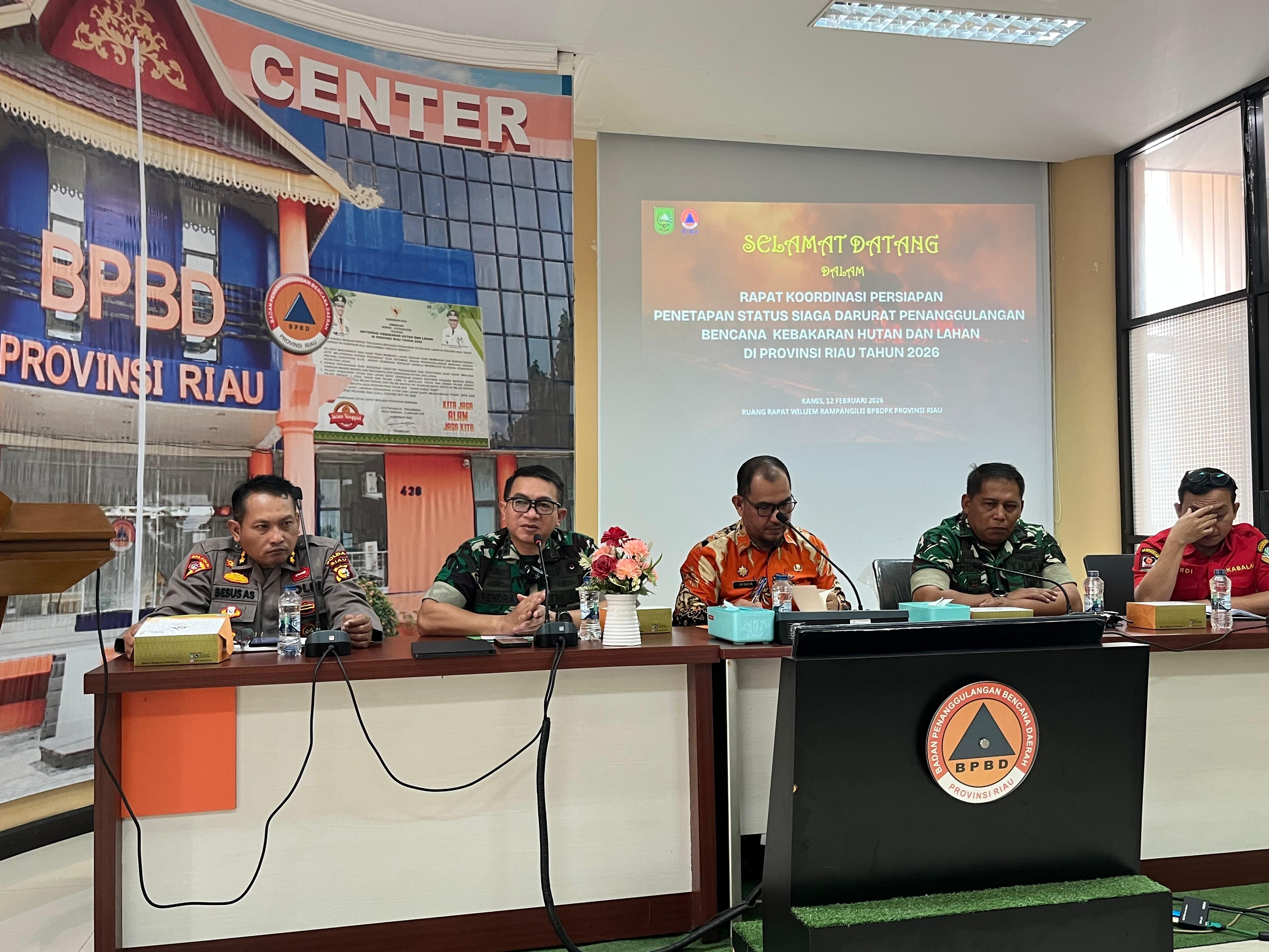 Rapat Koordinasi Persiapan Penetapan Status Siaga Darurat Penanggulangan Bencana Kebakaran Hutan dan Lahan (Karhutla) Provinsi Riau Tahun 2026